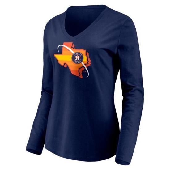 ヒューストン・アストロズ レディース チーム ロゴ ペイント ザ ブラック ロングスリーブ Vネック Tシャツ - ネイビーは、メジャーリーグ公認のMLBグッズです。