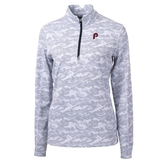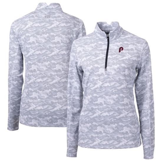 フィラデルフィア・フィリーズ Cutter &Buck レディース クーパーズタウン コレクション トラバースe カモ プリント ストレッチ クォーター-ジップ トップ - グレーは、メジャーリーグ公認のMLBグッズです。