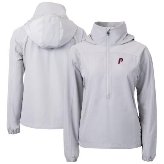 フィラデルフィア・フィリーズ Cutter &Buck レディース クーパーズタウン コレクション Charter Eco Recycled ハーフジップ Anorak ジャケット - グレーは、メジャーリーグ公認のMLBグッズです。