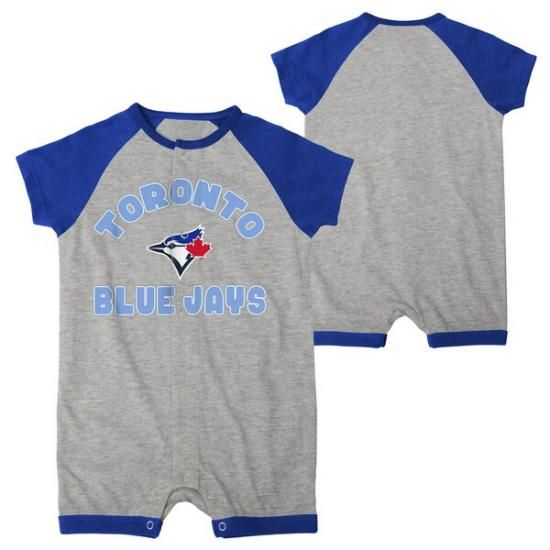 トロント・ブルージェイズ 新生児 & キッズ Extra ベース ヒット ラグラン フル-スナップ ロンパース - ヘザー グレーは、メジャーリーグ公認のMLBグッズです。