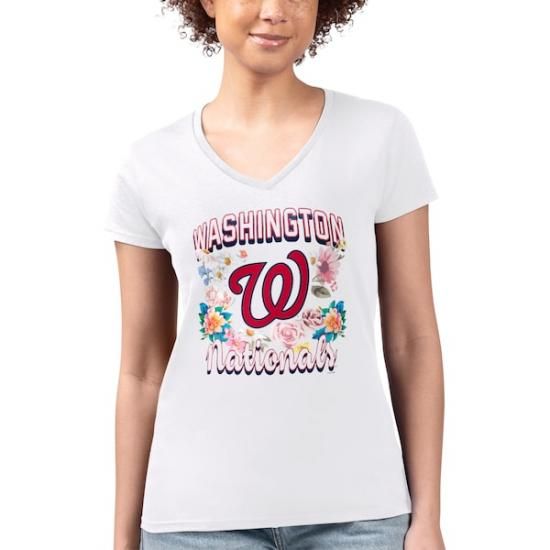 ワシントン・ナショナルズ G-III 4Her by カール バンクス レディース Super-スリムフィット 軽量 フラワーs グラフィック Vネック Tシャツ - ホワイトは、メジャーリーグ公認のMLBグッズです。