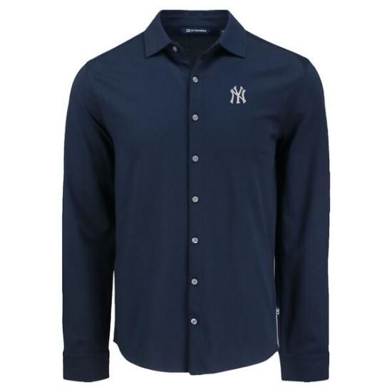 ニューヨーク・ヤンキース Cutter &Buck ニットted アドンバンテージ トライブレンド Eco ソフト ピケ ロングスリーブ ボタン-アップ シャツ - ネイビーは、メジャーリーグ公認のMLBグッズです。