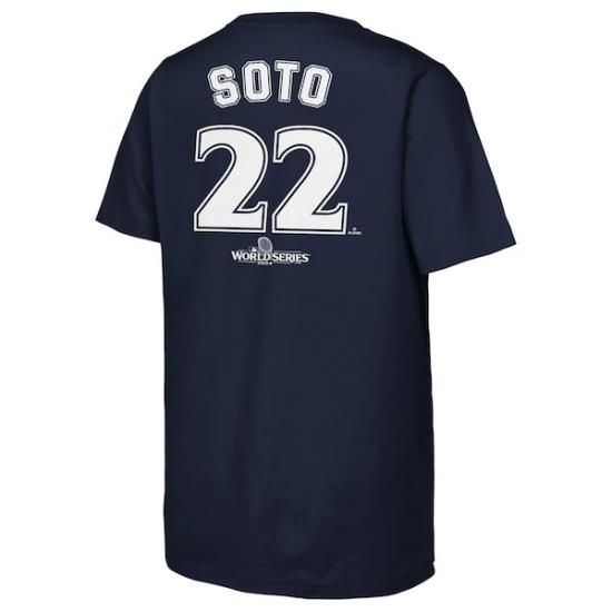 フアン・ソト ニューヨーク・ヤンキース ファナティクス ユース 2024 ワールド シリーズ プレーヤー ネーム&ナンバー Tシャツ - ネイビーは、メジャーリーグ公認のMLBグッズです。
