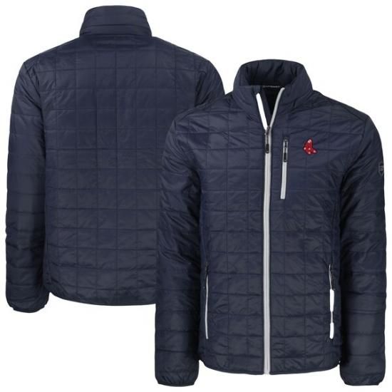 ボストン・レッドソックス Cutter &Buck ビッグ & トール レインier PrimaLオブtR Eco 保冷 フル-ジップ パーカー パフer ジャケット - ネイビーは、メジャーリーグ公認のMLBグッズです。