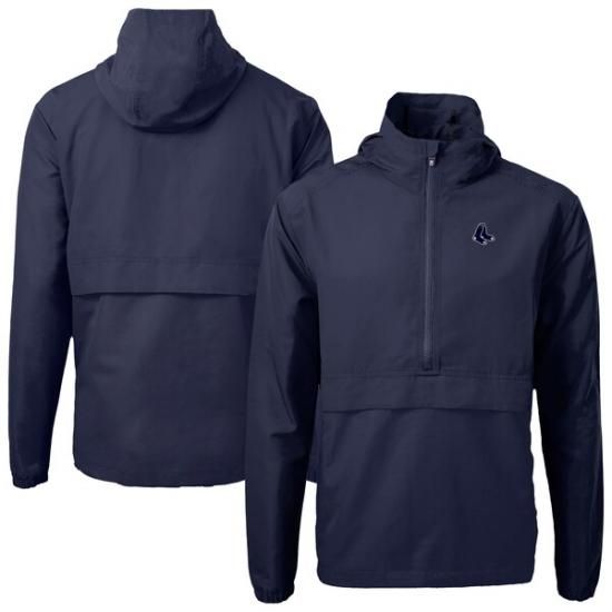 ボストン・レッドソックス Cutter &Buck Charter Eco Recycled Anorak ハーフジップ パーカー ジャケット - ネイビーは、メジャーリーグ公認のMLBグッズです。