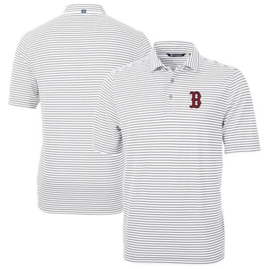ボストン・レッドソックス Cutter &Buck Virtue Eco ピケ ストライプ Recycled ポロ - グレーは、メジャーリーグ公認のMLBグッズです。