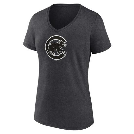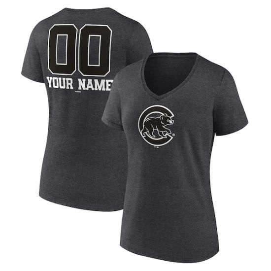 シカゴ・カブス レディース パーソナライズ Mオンochrome ネーム&ナンバー Vネック Tシャツ - チャコールは、メジャーリーグ公認のMLBグッズです。