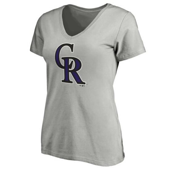 コロラド・ロッキーズ レディース オフィシャル ロゴ Vネック Tシャツ - グレー