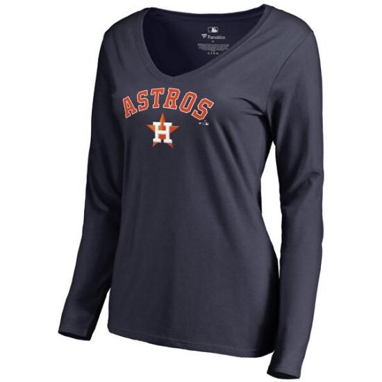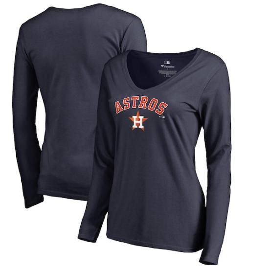 ヒューストン・アストロズ レディース チーム ロックup スリムフィット ロングスリーブ Vネック Tシャツ - ネイビーは、メジャーリーグ公認のMLBグッズです。