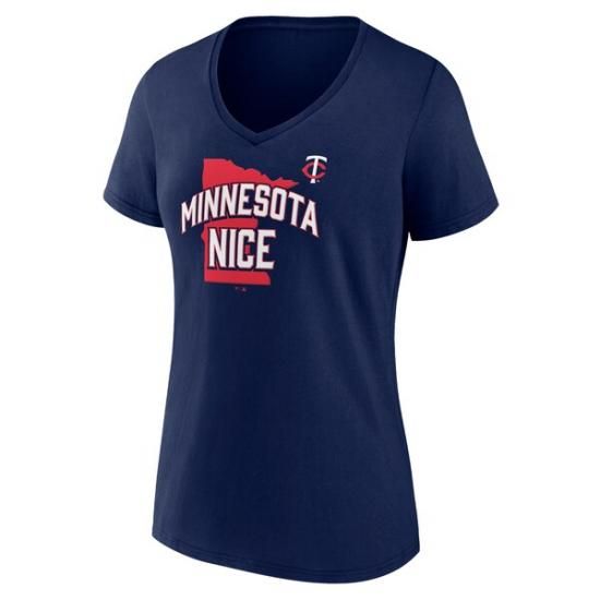 ミネソタ・ツインズ レディース Nice Vネック Tシャツ - ネイビーは、メジャーリーグ公認のMLBグッズです。