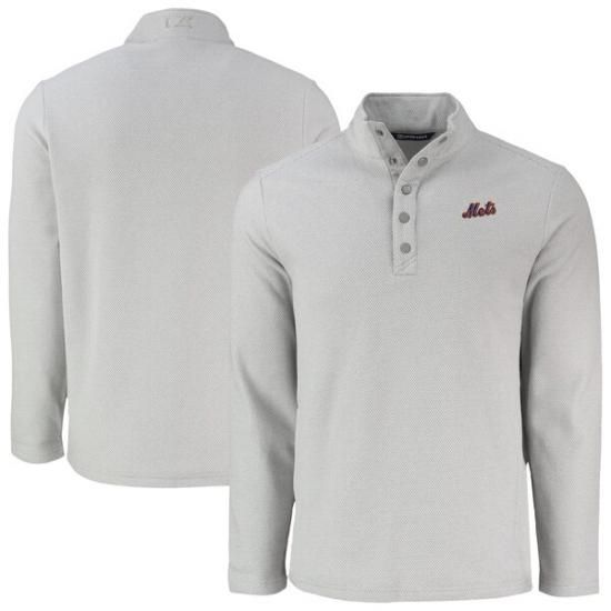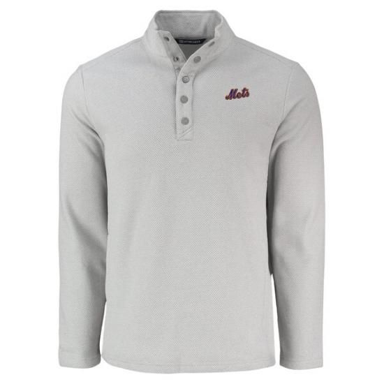 ニューヨーク・メッツ Cutter &Buck Hunts Point Eco 織り目加工の フリース Recycled ハーフスナップ スウェット - グレーは、メジャーリーグ公認のMLBグッズです。