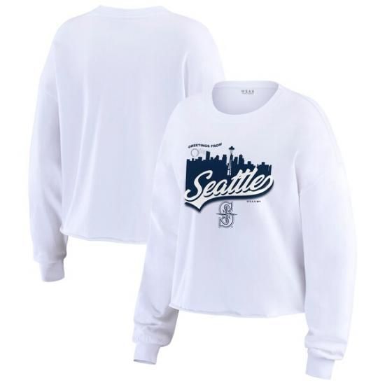 シアトル・マリナーズ WEAR by Erin Andrews レディース ドメスティック ポストcard ロングスリーブ Tシャツ - ホワイトは、メジャーリーグ公認のMLBグッズです。