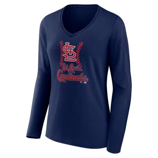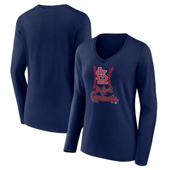 セントルイス・カージナルス レディース ファストボール ロングスリーブ Vネック Tシャツ - ネイ