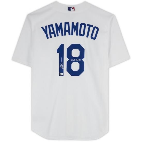 Yoshinobu Yamamoトゥー ロサンゼルス・ドジャース 直筆サイン入り ファナティクス オーセンティック 2024 ワールド シリーズ チャンピオン ホワイト Nike レプリカ ユニフォーム with "24 WS チャンプs" インスクリプションは、メジャーリーグ公認のMLBグッズです。