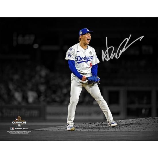 Yoshinobu Yamamoトゥー ロサンゼルス・ドジャース 直筆サイン入り ファナティクス オーセンティック 2024 ワールド シリーズ チャンピオン 11" x 14" フォトグラフは、メジャーリーグ公認のMLBグッズです。