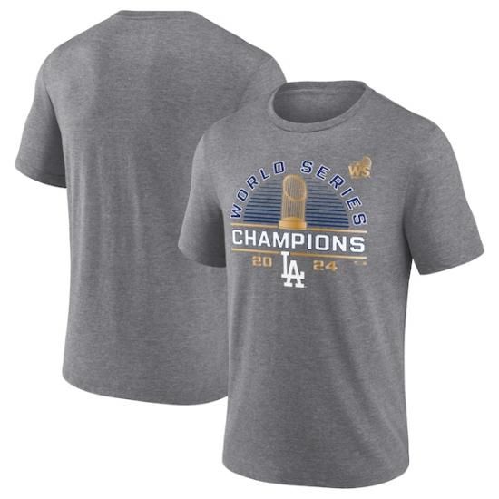 ロサンゼルス・ドジャース ファナティクス 2024 ワールド シリーズ チャンピオン トライブレンド Tシャツ - ヘザー グレーは、メジャーリーグ公認のMLBグッズです。