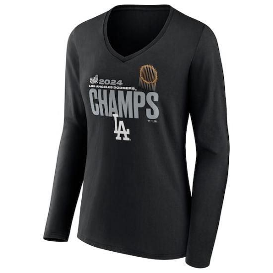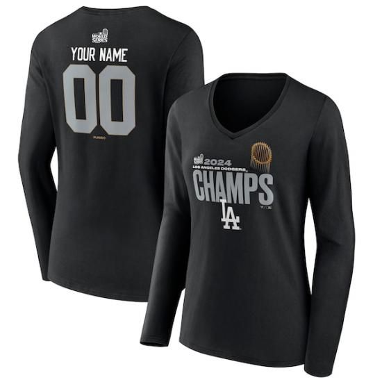 ロサンゼルス・ドジャース レディース 2024 ワールド シリーズ チャンピオン カスタム ネーム&ナンバー ロングスリーブ Vネック Tシャツ - ブラックは、メジャーリーグ公認のMLBグッズです。