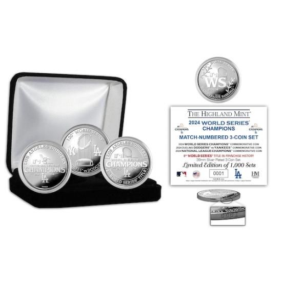 ロサンゼルス・ドジャース ハイランドミント 2024 ワールド シリーズ チャンピオン 39mm 3点 シルバー コイン セット - 限定版 オブ 1,000は、メジャーリーグ公認のMLBグッズです。