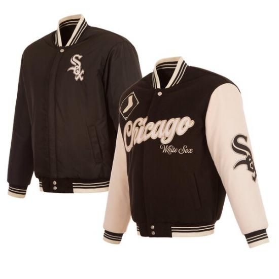 シカゴ・ホワイトソックス JH デザイン リバーシブル ウール フル-ジップ ジャケット - ブラッ