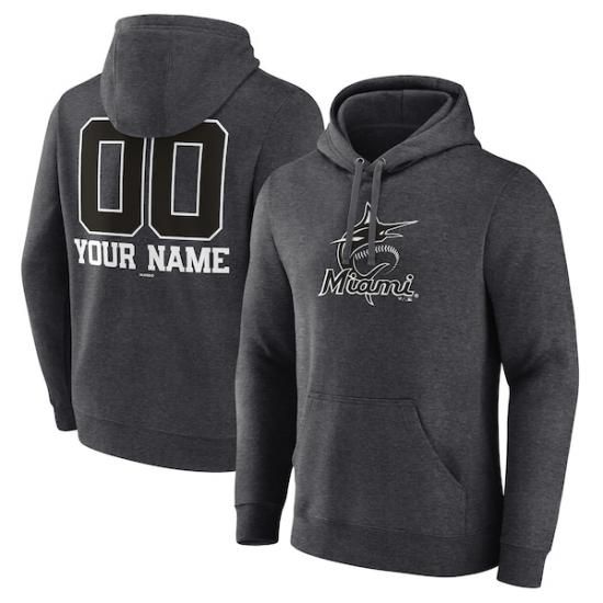 マイアミ・マーリンズ パーソナライズ Mオンochrome ネーム&ナンバー プルオーバー パーカー - チャコールは、メジャーリーグ公認のMLBグッズです。
