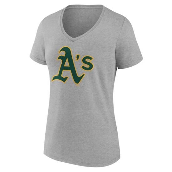 アスレチックス レディース オフィシャル ロゴ Vネック Tシャツ - グレーは、メジャーリーグ公認のMLBグッズです。