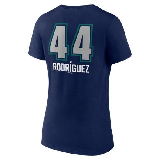 Julio Rodriguez シアトル・マリナーズ レディース ネーム&ナンバー ファストボール Vネック Tシャツ - ネイビーは、メジャーリーグ公認のMLBグッズです。
