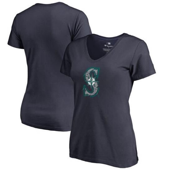 シアトル・マリナーズ レディース スパラター ロゴ Vネック Tシャツ - ネイビーは、メジャーリーグ公認のMLBグッズです。