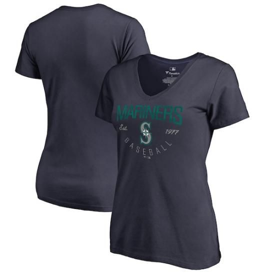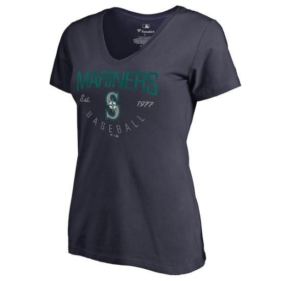 シアトル・マリナーズ レディース Live For It Vネック Tシャツ - ネイビー