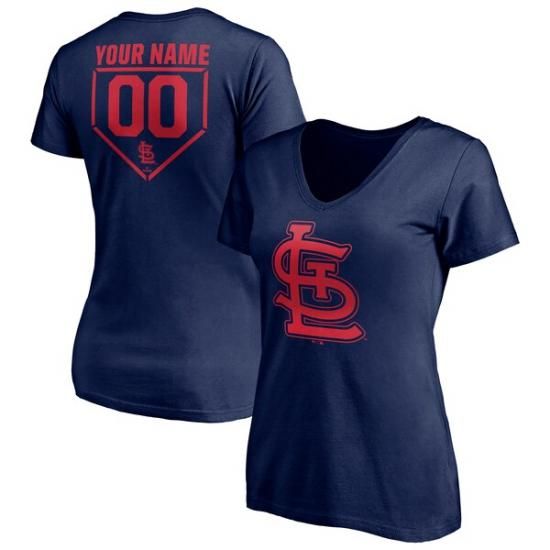 セントルイス・カージナルス レディース パーソナライズ RBI ロゴ Vネック Tシャツ - ネイビ