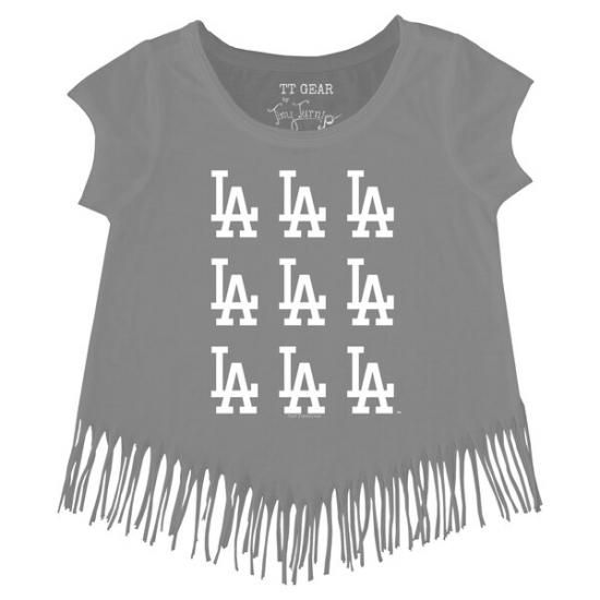 ロサンゼルス・ドジャース タイニー ターニプ キッズ(歩き始めの子供) ロゴ Grid Fringe Tシャツ - グレーは、メジャーリーグ公認のMLBグッズです。