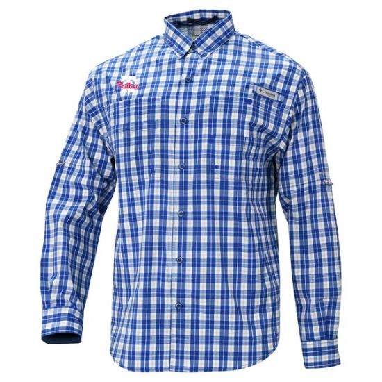 フィラデルフィア・フィリーズ コロンビア Super Slack Tide Omni-Wick ボタン-アップ シャツ - ロイヤルは、メジャーリーグ公認のMLBグッズです。