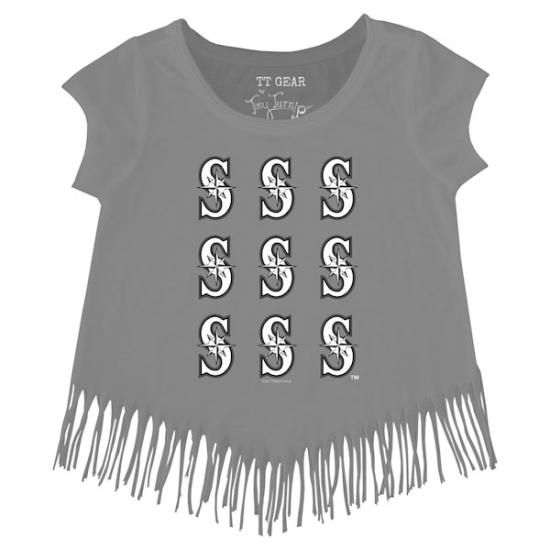 シアトル・マリナーズ タイニー ターニプ キッズ(歩き始めの子供) ロゴ Grid Fringe Tシャツ - グレーは、メジャーリーグ公認のMLBグッズです。