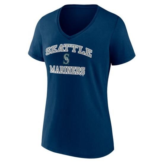 シアトル・マリナーズ レディース ハート & ソウル Vネック Tシャツ - ネイビー