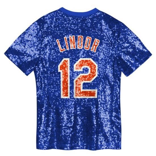フランシスコ・リンドーア ニューヨーク・メッツ ジュニアs ネーム&ナンバー シークイン(衣服の装飾などに用いる光る金属片) Vネック トップ - ロイヤルは、メジャーリーグ公認のMLBグッズです。