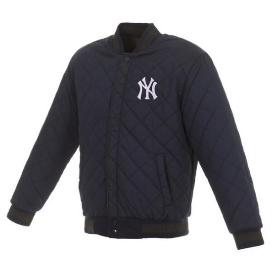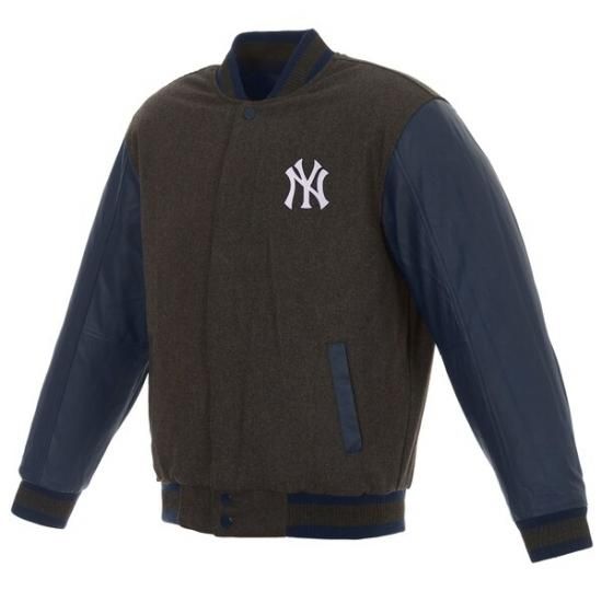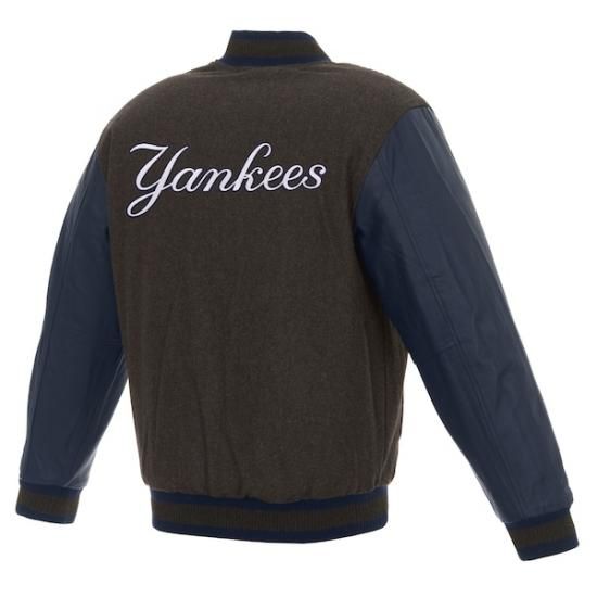 ニューヨーク・ヤンキース JH デザイン ウール & レザー リバーシブル ジャケット - チャコール/ネイビーは、メジャーリーグ公認のMLBグッズです。