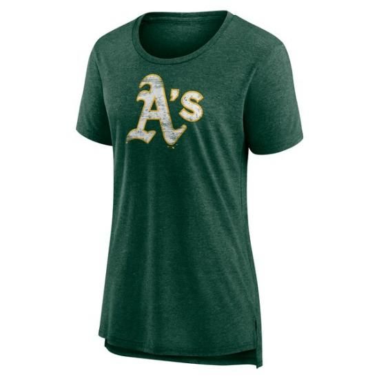 アスレチックス レディース ヴィンテージ風 オフィシャル ロゴ トライブレンド Tシャツ - グリーンは、メジャーリーグ公認のMLBグッズです。