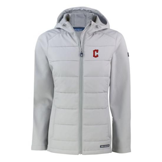クリーブランド・ガーディアンズ Cutter &Buck レディース Evoke ハイブリッド Eco ソフトshell Recycled フル-ジップ パーカー ジャケット - グレーは、メジャーリーグ公認のMLBグッズです。