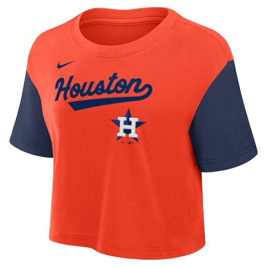 ヒューストン・アストロズ Nike レディース スクリプト ドライフィット 短く切った Tシャツ - オレンジ/ネイビーは、メジャーリーグ公認のMLBグッズです。