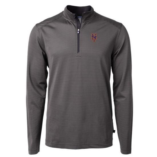 ニューヨーク・メッツ Cutter &Buck Virtue Eco ピケ マイクロ ストライプ Recycled クォーター-ジップ プルオーバー トップ - ブラック/グレーは、メジャーリーグ公認のMLBグッズです。