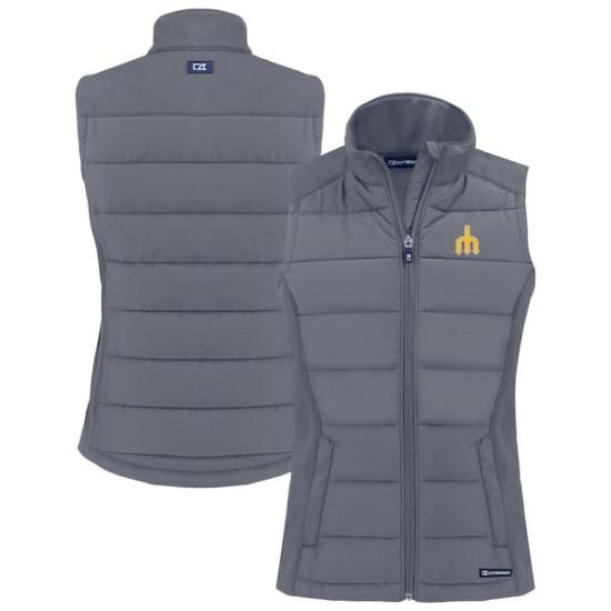 シアトル・マリナーズ Cutter &Buck レディース Evoke ハイブリッド Eco PrimaLオブt ソフトshell Recycled フル-ジップ ベスト - チャコールは、メジャーリーグ公認のMLBグッズです。