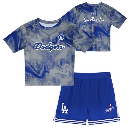 ロサンゼルス・ドジャース キッズ(保育園・幼稚園) バッター Infielder 2ピース セット - グレーは、メジャーリーグ公認のMLBグッズです。