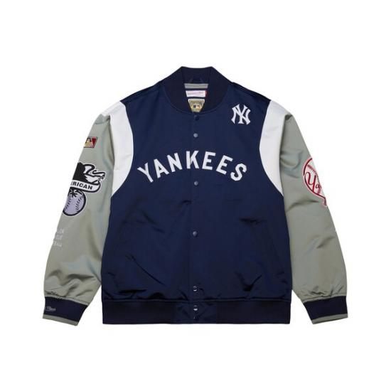 ニューヨーク・ヤンキース ミッチェル&ネス クーパーズタウン コレクション チーム Origins サテン フル-スナップ ジャケット - ネイビー/グレーは、メジャーリーグ公認のMLBグッズです。