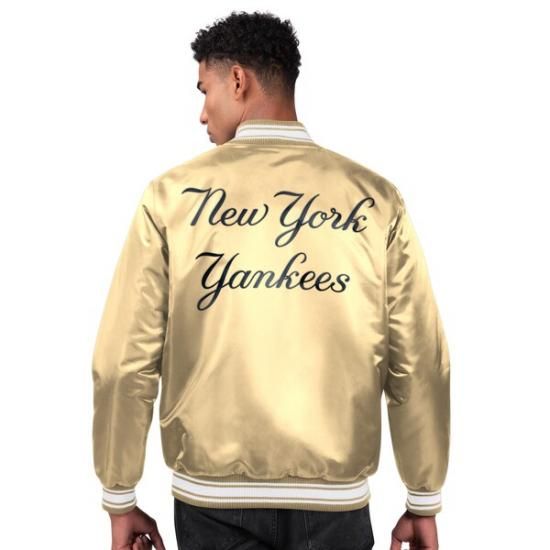 ニューヨーク・ヤンキース スターター ロッカー ルーム サテン フル-スナップ ヴィーシティ ジャケット - タンは、メジャーリーグ公認のMLBグッズです。