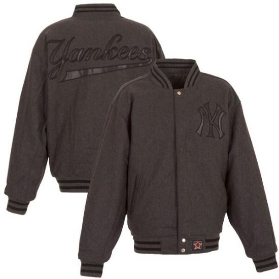 ニューヨーク・ヤンキース JH デザイン チーム ロゴ ウール フル-スナップ ジャケット - チャコールは、メジャーリーグ公認のMLBグッズです。