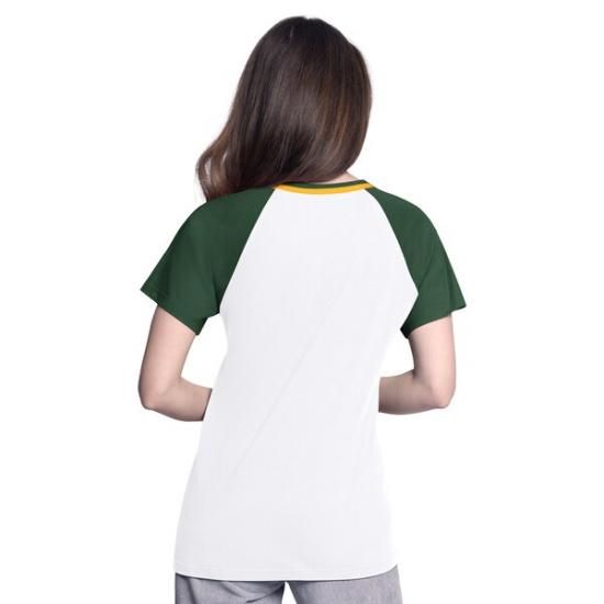 アスレチックス G-III 4Her by カール バンクス レディース ボール パーク ラグラン Vネック Tシャツ - ホワイト/グリーンは、メジャーリーグ公認のMLBグッズです。