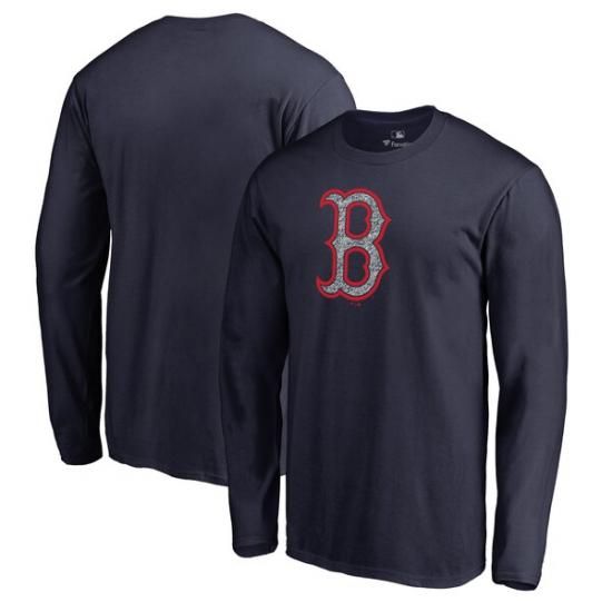 ボストン・レッドソックス スタティック ロゴ ロングスリーブ Tシャツ - ネイビーは、メジャーリーグ公認のMLBグッズです。