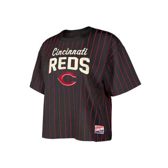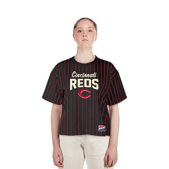 シンシナティ・レッズ New Era(ニューエラ) レディース クーパーズタウン コレクション マルチplier ピンストライプ 短く切った Tシャツ - ブラックは、メジャーリーグ公認のMLBグッズです。