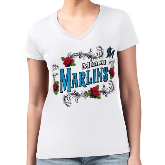 マイアミ・マーリンズ G-III 4Her by カール バンクス レディース Super-スリムフィット 軽量 レトロ ローズs Vネック Tシャツ - ホワイトは、メジャーリーグ公認のMLBグッズです。