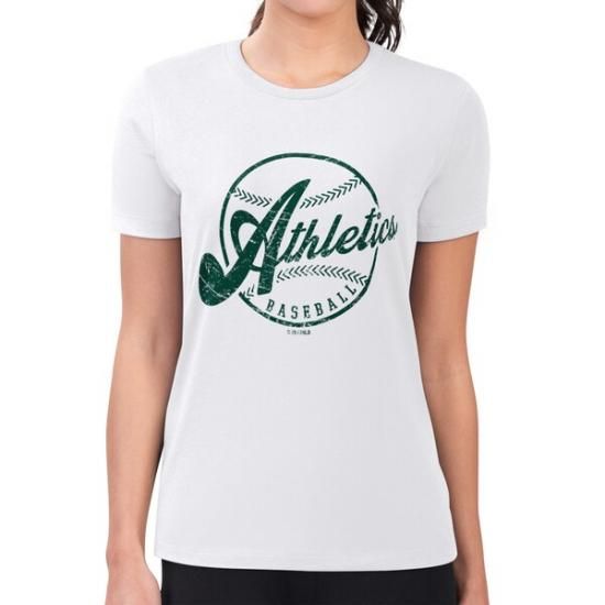 アスレチックス G-III 4Her by カール バンクス レディース Super-スリムフィット 軽量 アンティーク ベースボール チーム Tシャツ - ホワイトは、メジャーリーグ公認のMLBグッズです。