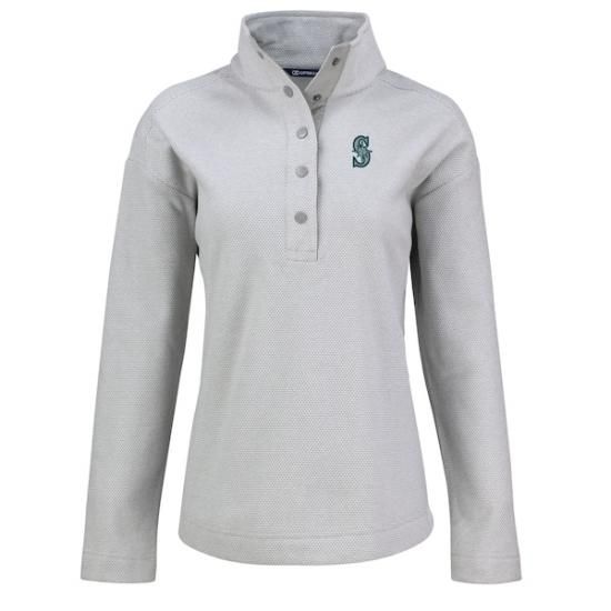 シアトル・マリナーズ Cutter &Buck レディース Hunts Point Eco ハーフスナップ ジャケット - グレーは、メジャーリーグ公認のMLBグッズです。